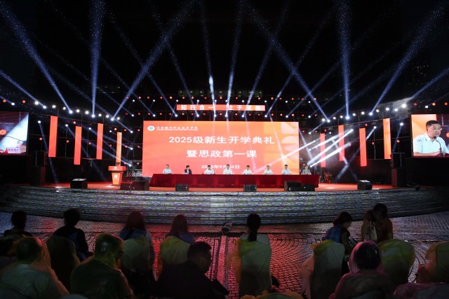 本網訊(黨委宣傳部)9月24日晚18點30分,江西現代職業技術學院在校內工匠廣場隆重舉行2025級新生開學典禮。這場備受矚目的典禮在夜幕的籠罩下,以莊重而熱烈的氛圍拉開了新生大學生活的序幕。黨委書記陳飛,黨委副書記、院長廖列法和學院領導歐陽志廣、朱建華、郭志江、陳宗文、李雁、朱莉,各職能部門、二級學院(技師教學部)主要負責人,校友代表、教師代表、老生代表與以線上、線下方式參與典禮的全體2025級新生一同開啟這段意義非凡的新征程。開學典禮由黨委委員、副院長歐陽志廣主持。